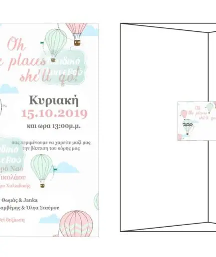 Προσκλητήριο Βάπτισης με θέμα αερόστατο