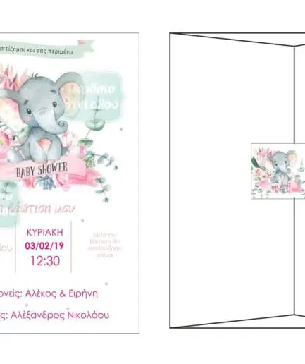 Προσκλητήριο Βάπτισης Ελεφαντάκι Girl