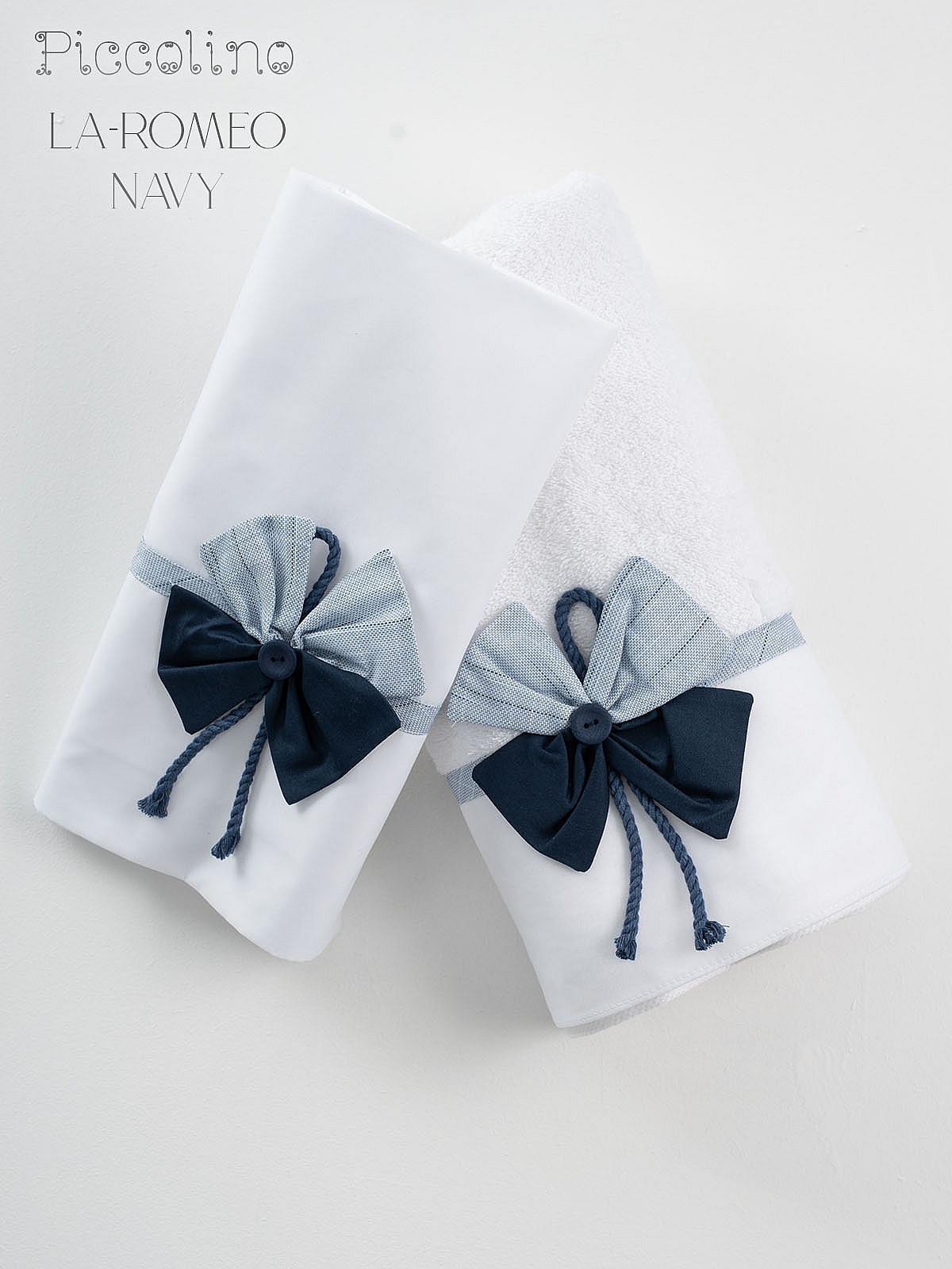 Σετ λαδόπανα Piccolino LA-ROMEO NAVY. Αποτελείται απο βαμβακερό λαδόπανο, πετσέτα 140*70εκ, εσώρουχα και πετσέτα ιερέα 30*50εκ. Συνδυάζεται με το κοστούμι PICCOLINO ROMEO NAVY