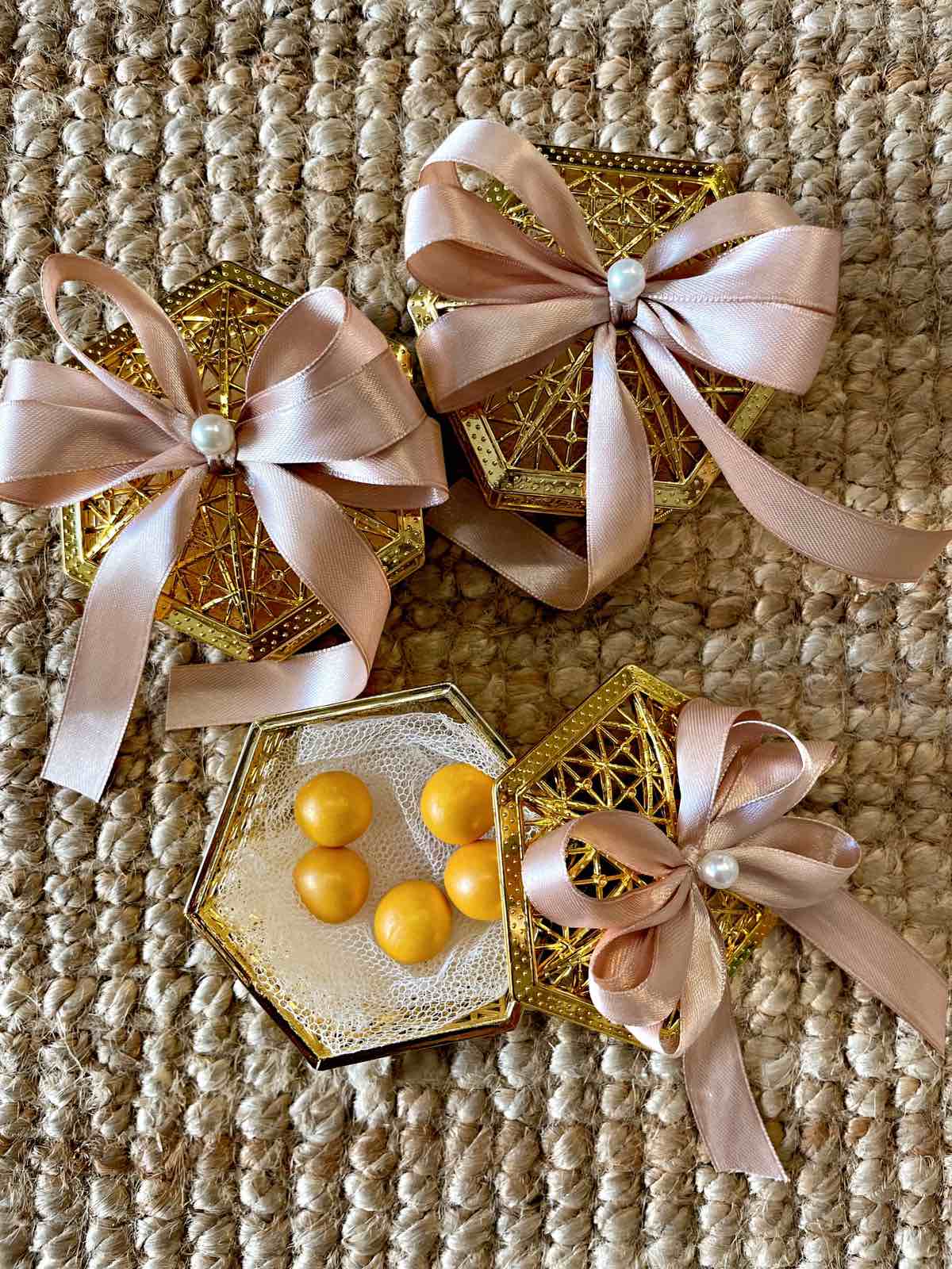 Η μπομπονιέρα σας έρχεται τελειωμένη – δεμένη με τα κουφέτα-κορδέλες.