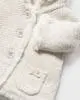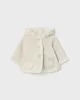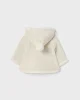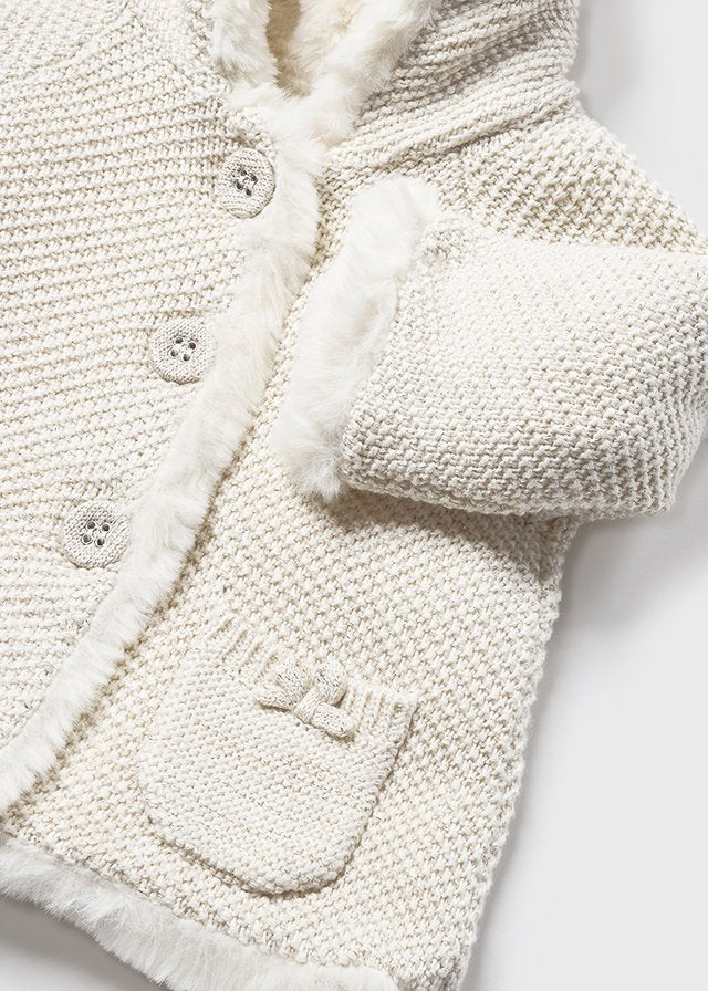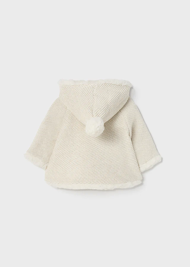 Μπεζ ζακέτα με γούνινη επένδυση και κουκούλα με πον-πον στο τελείωμα της.
