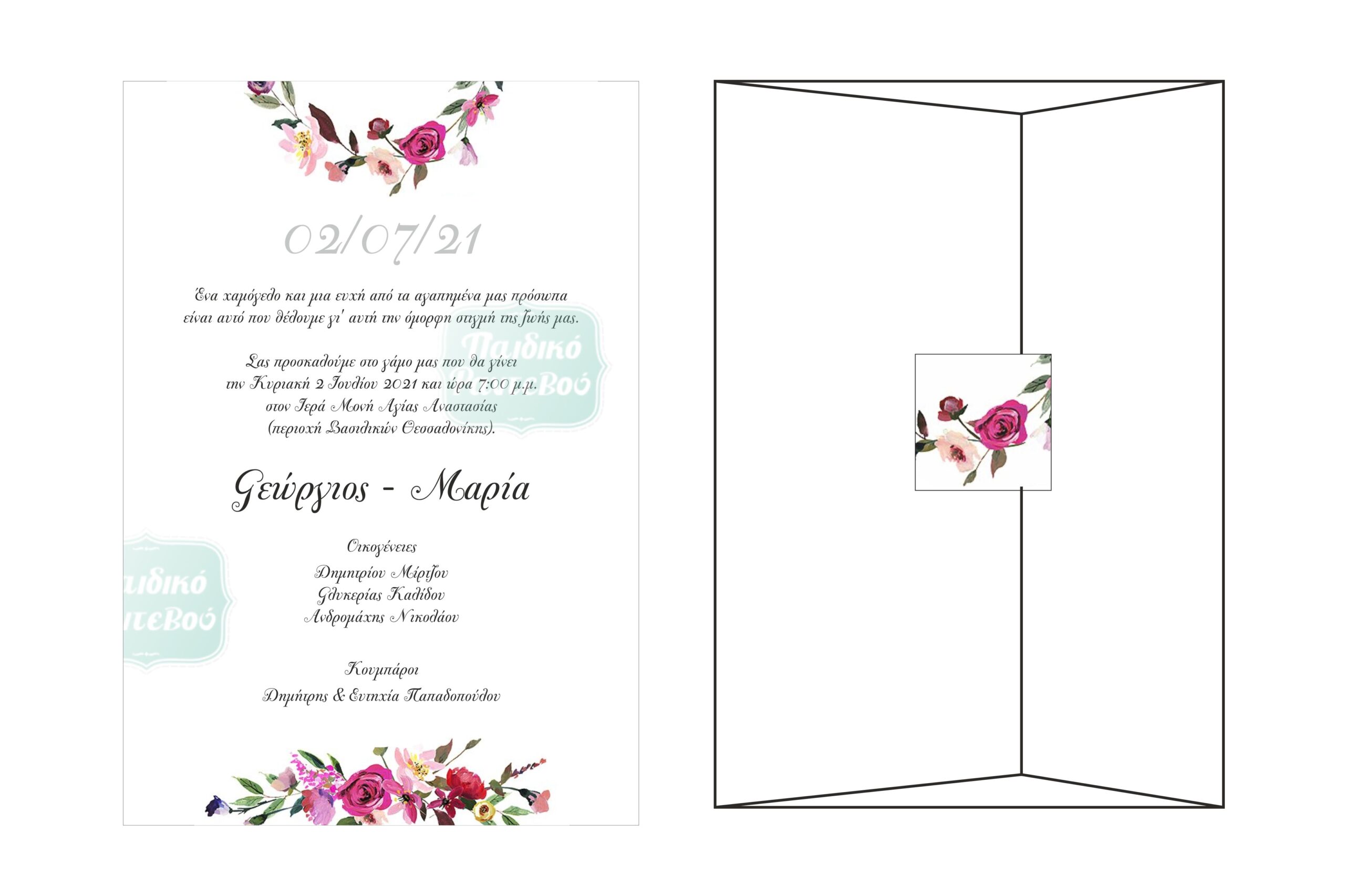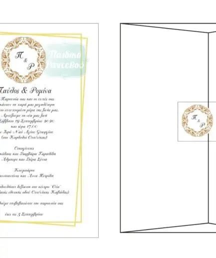 2 επιλογή) προσκλητήριο 220γρ + φάκελος λευκός 20cm x 14cm + αυτοκόλλητο στο ίδιο θέμα για να κλείσει ο φάκελος. Τιμή τεμαχίου 1,40€