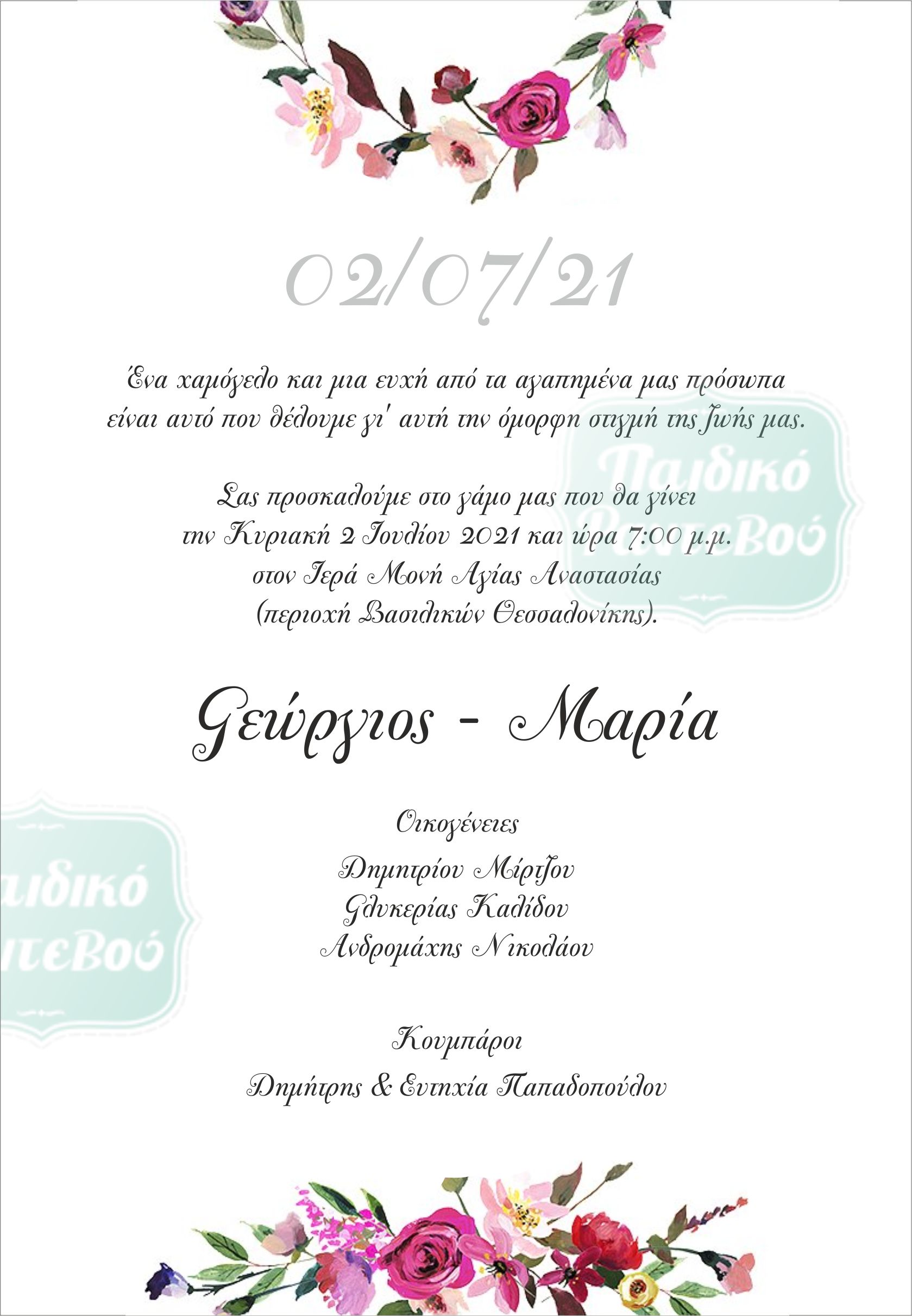 Ελάχιστη ποσότητα 50τεμ. Τα προσκλητήρια σας αποστέλλονται άδετα.