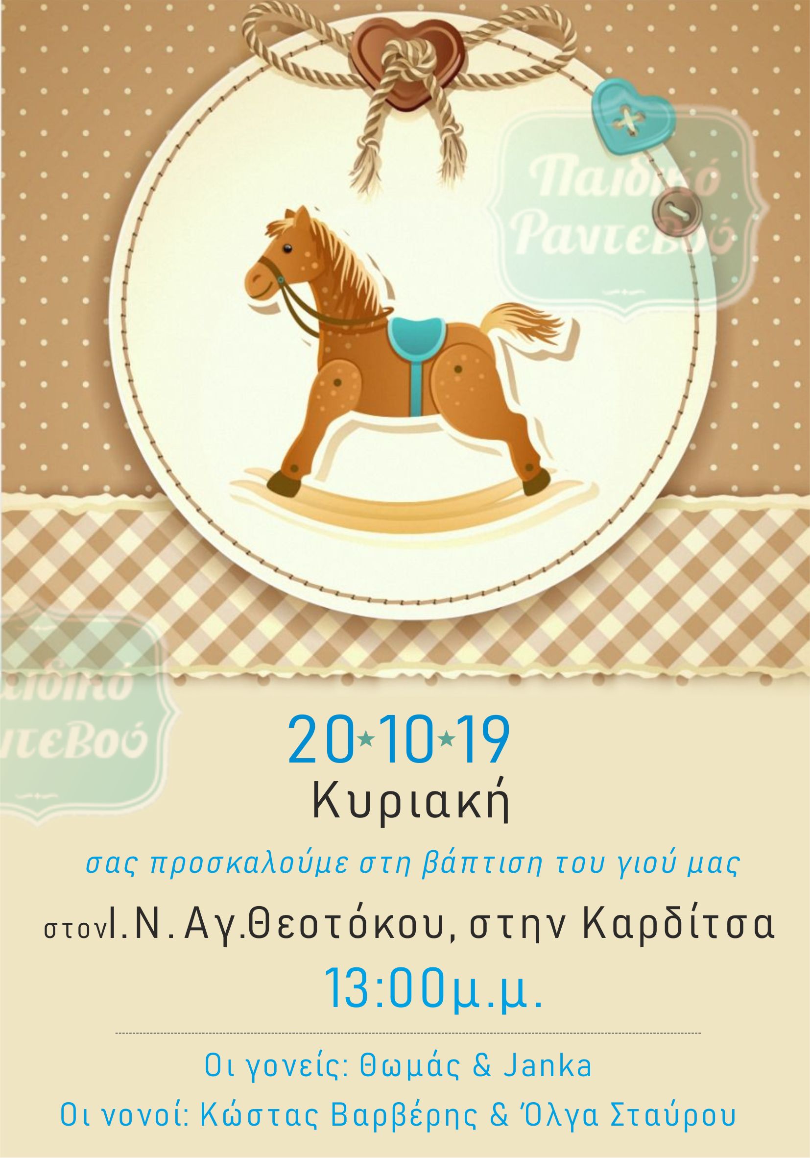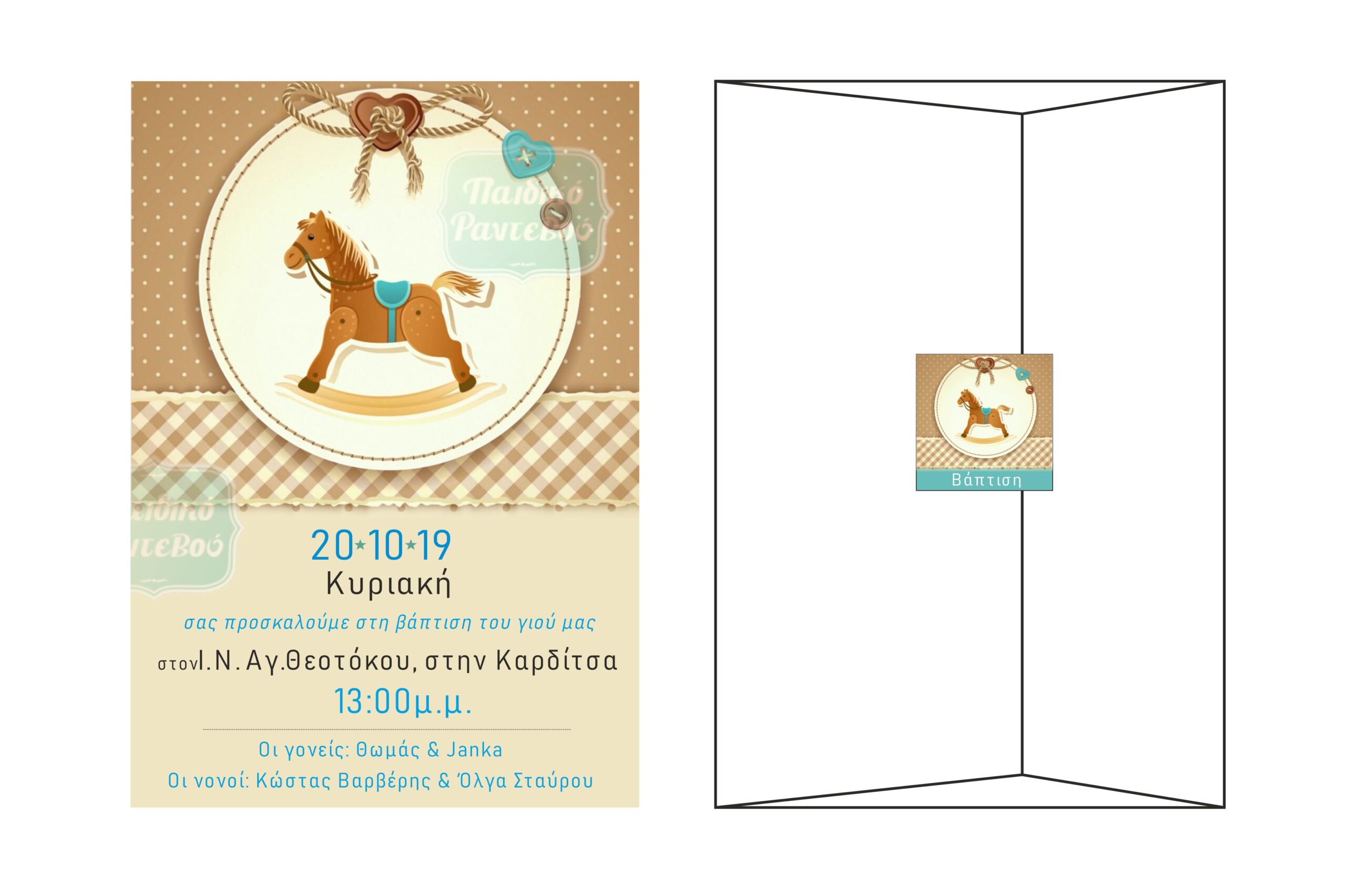 Προσκλητήριο Βάπτισης με θέμα αλογάκι carouzel για αγοράκι !