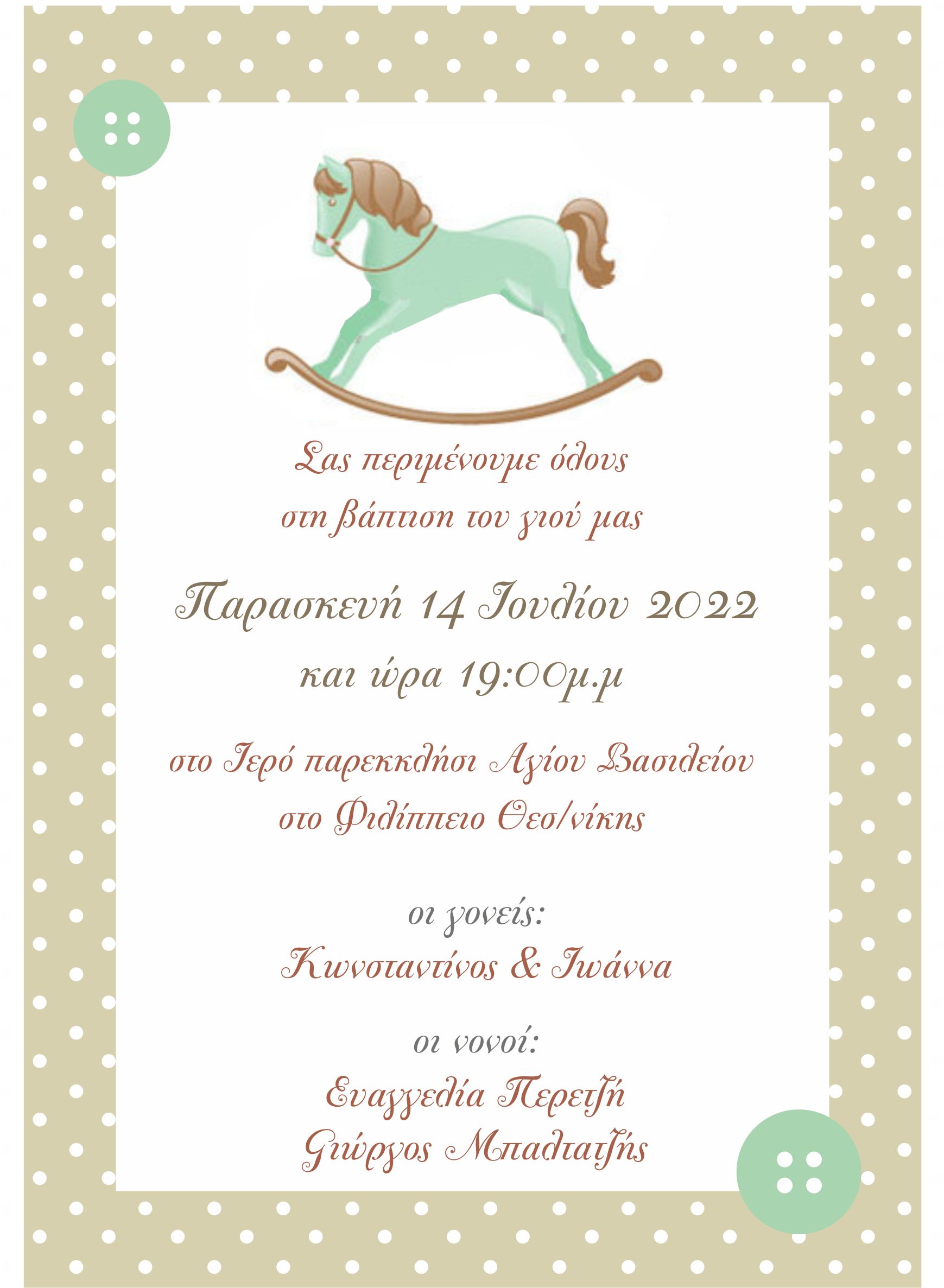 Προσκλητήριο Βάπτισης με θέμα carouzel!