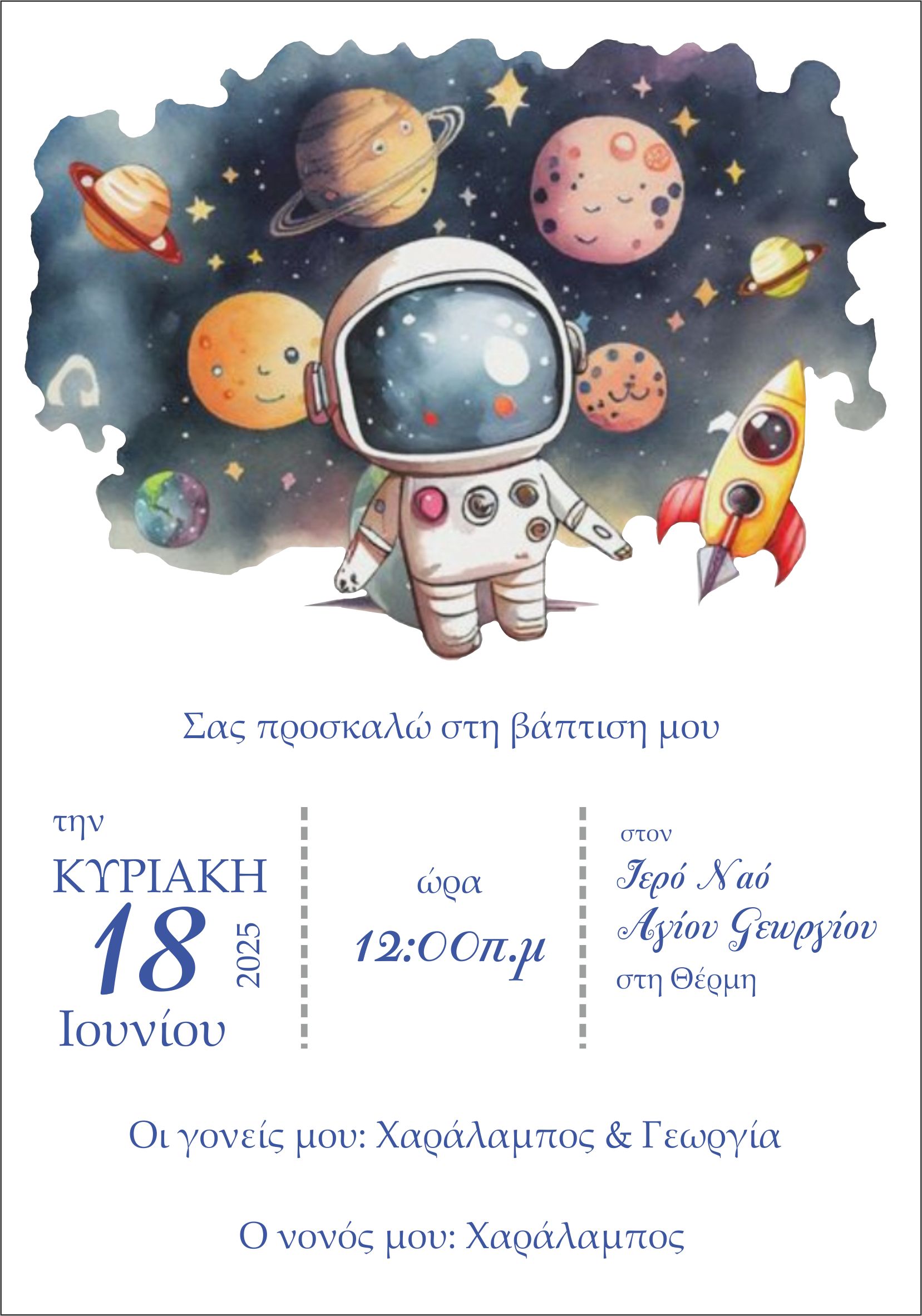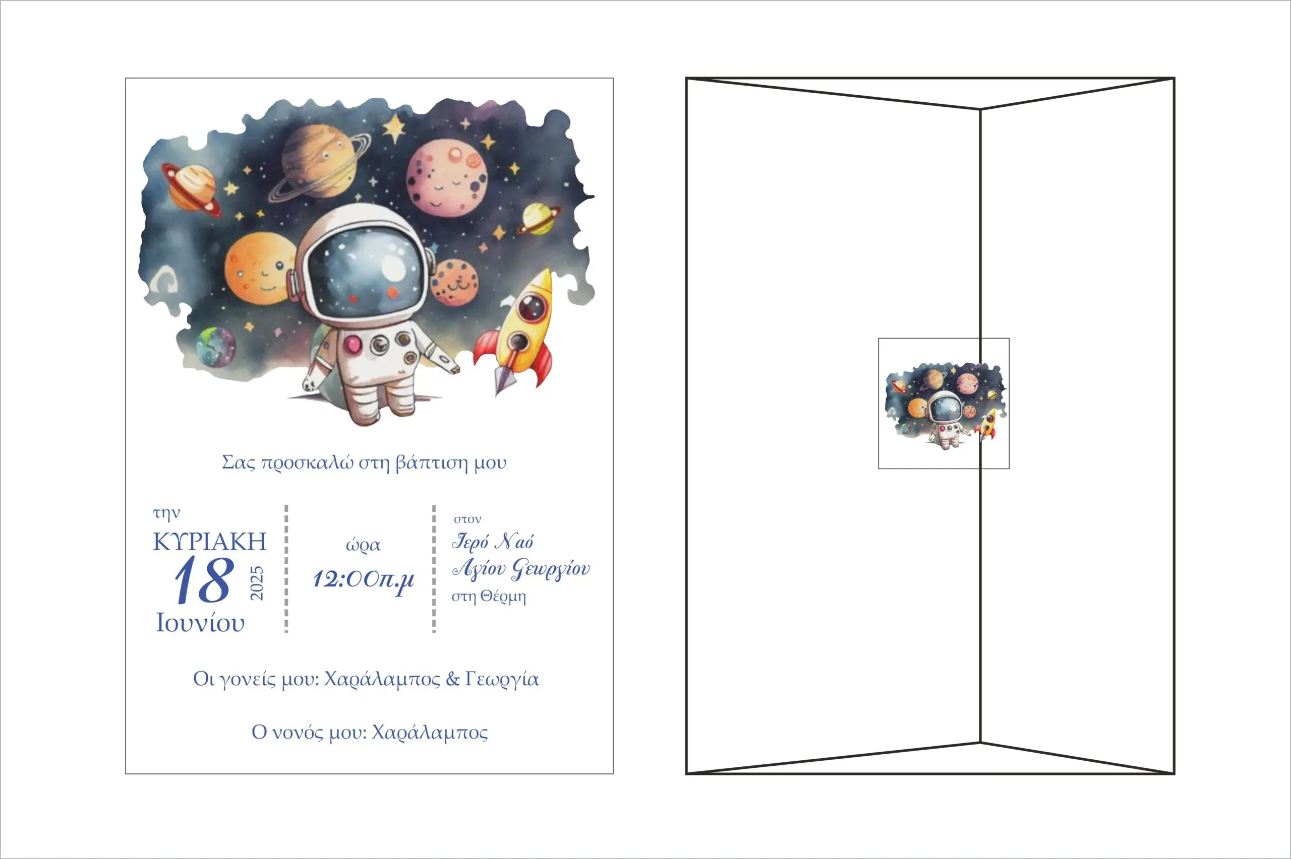 Προσκλητήριο Βάπτισης με θέμα spaceman