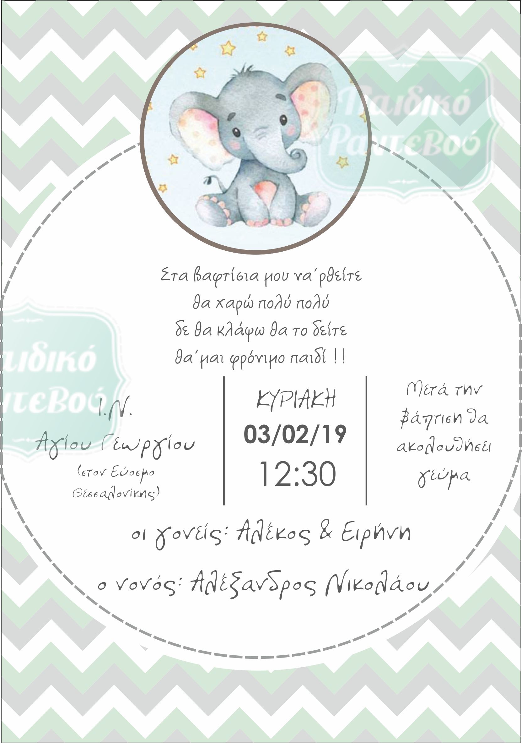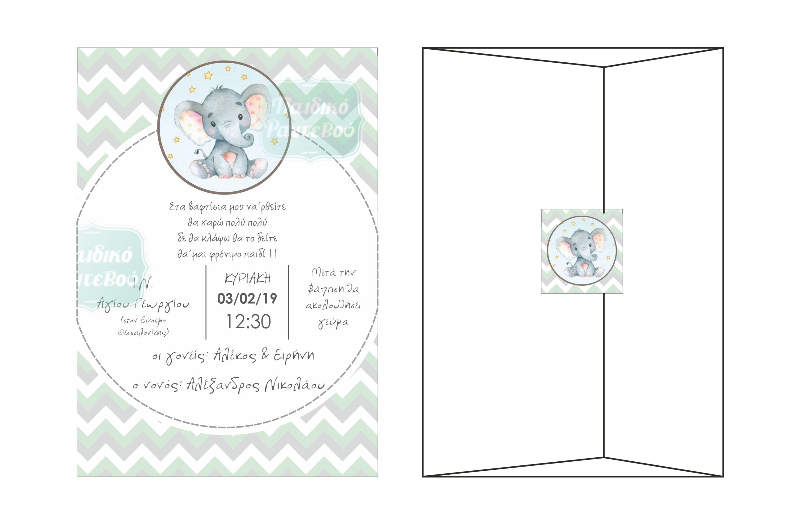 Προσκλητήριο Βάπτισης με θέμα ελεφαντάκι με αγοράκι !