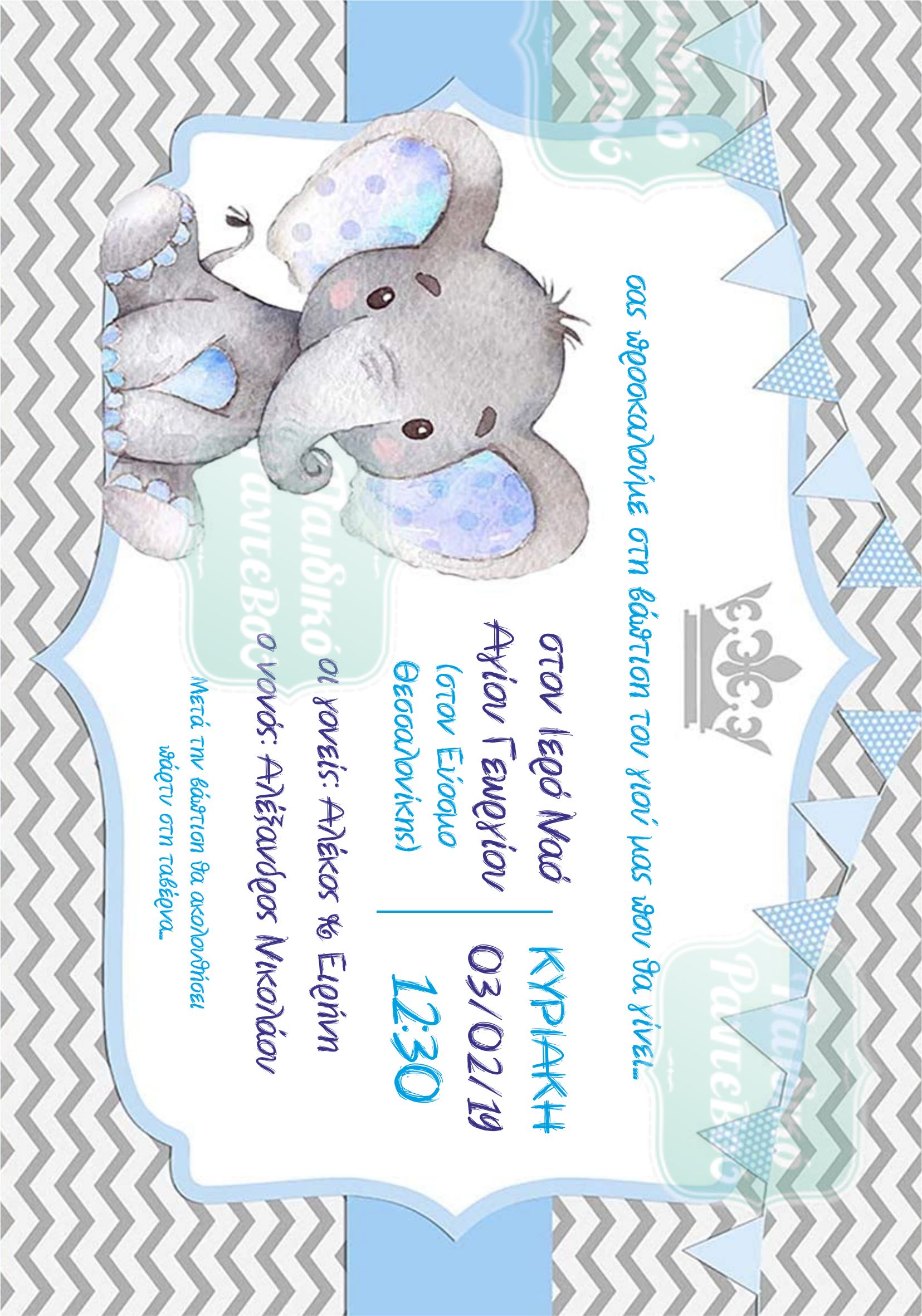 Προσκλητήριο Βάπτισης με θέμα ελεφαντάκι για αγοράκι !