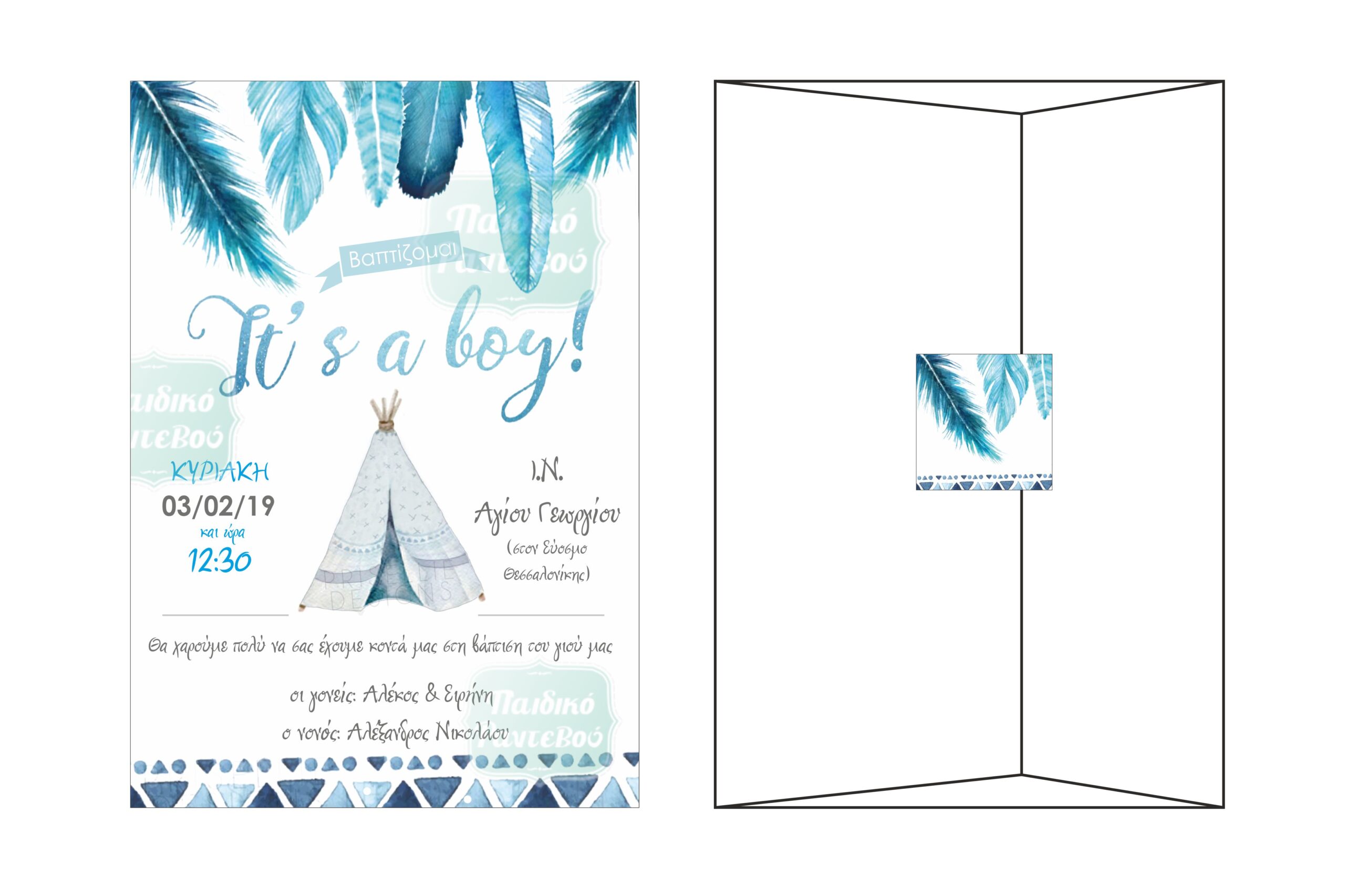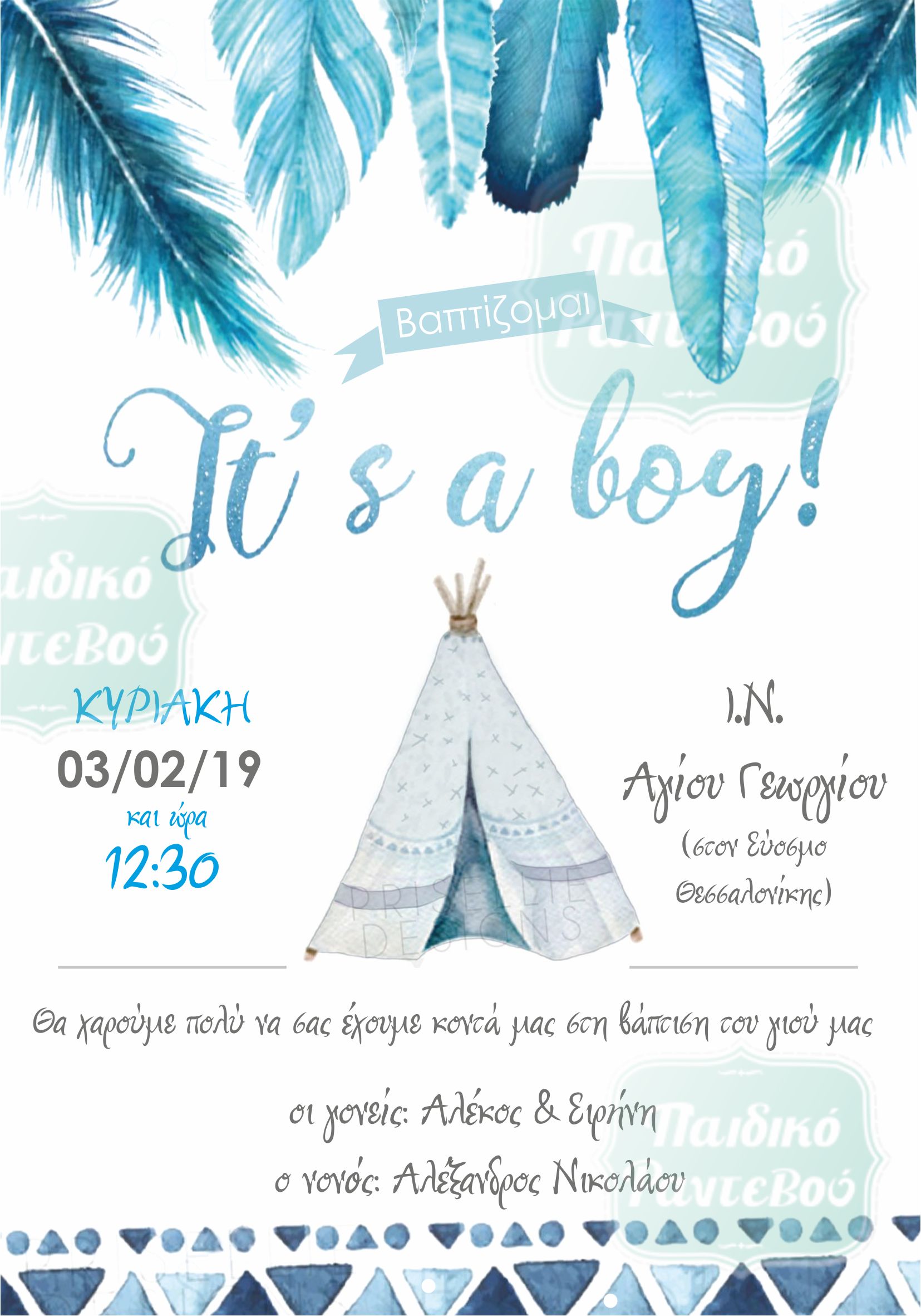 Προσκλητήριο Βάπτισης με θέμα ινδιάνικη σκηνή με αγοράκι !