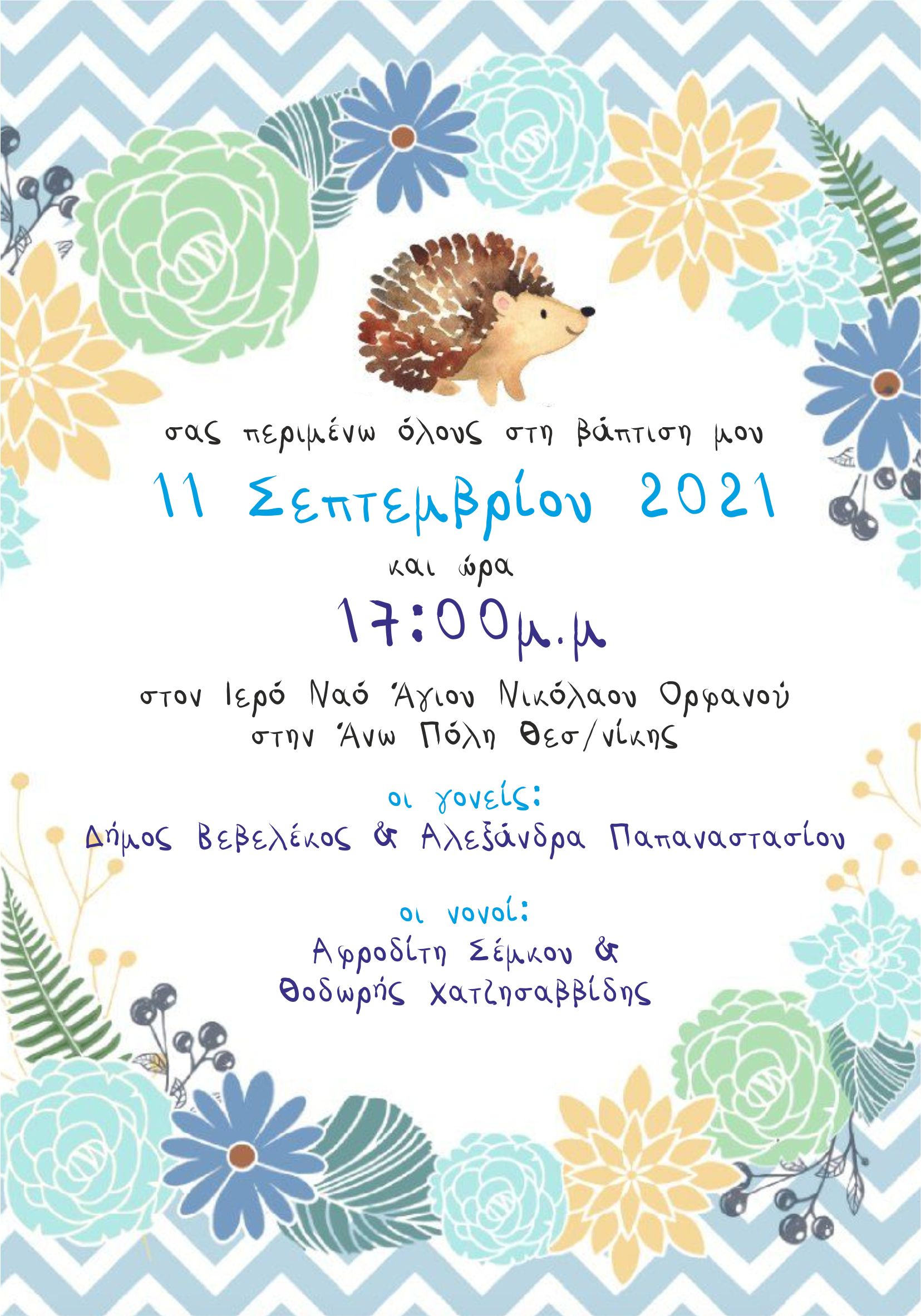 Προσκλητήριο Βάπτισης Σκαντζόχοιρος 2