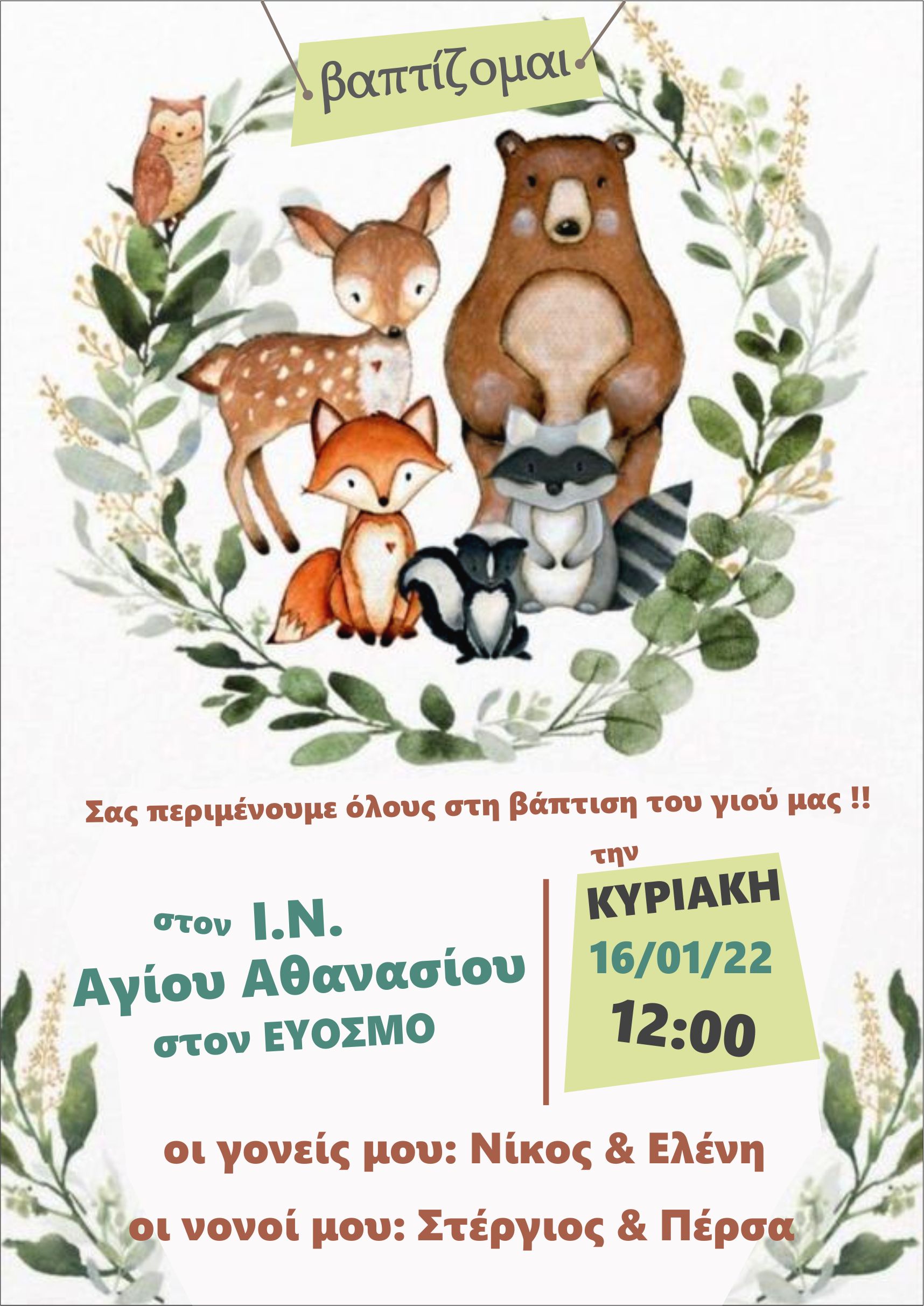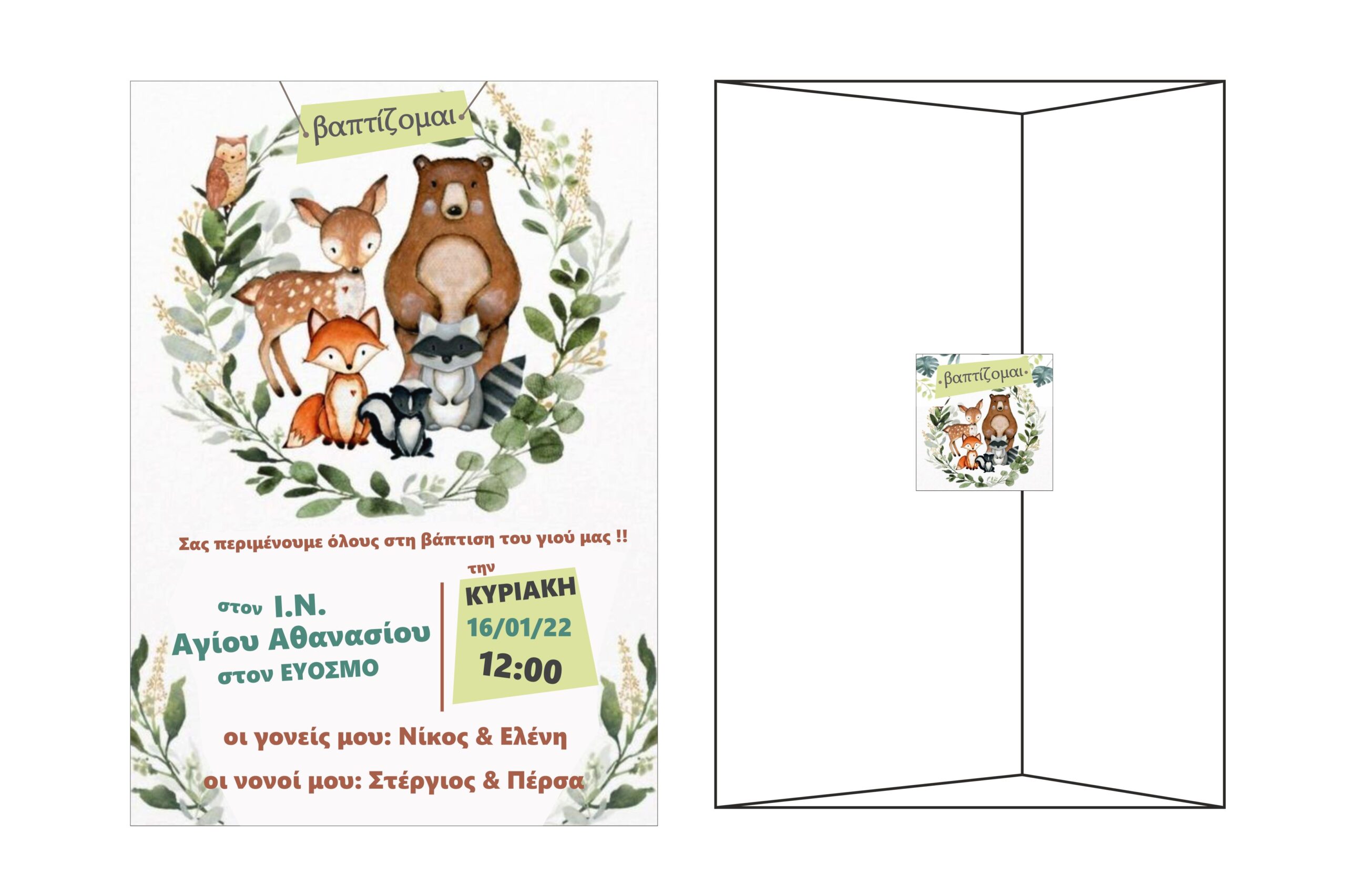 Προσκλητήριο Βάπτισης Ζωάκια του Δάσους