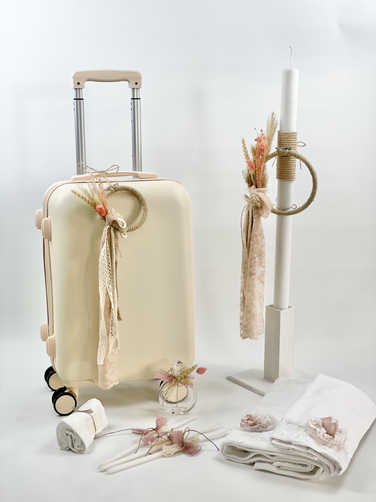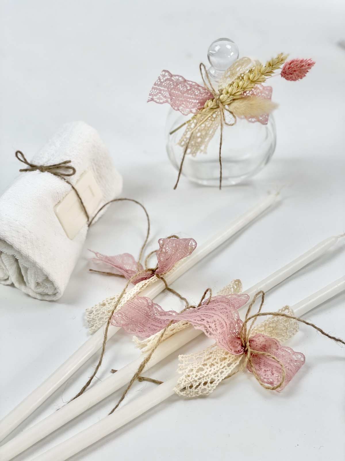 Σετ βάπτισης με θέμα στεφανάκι με αποξηραμένα λουλούδια
