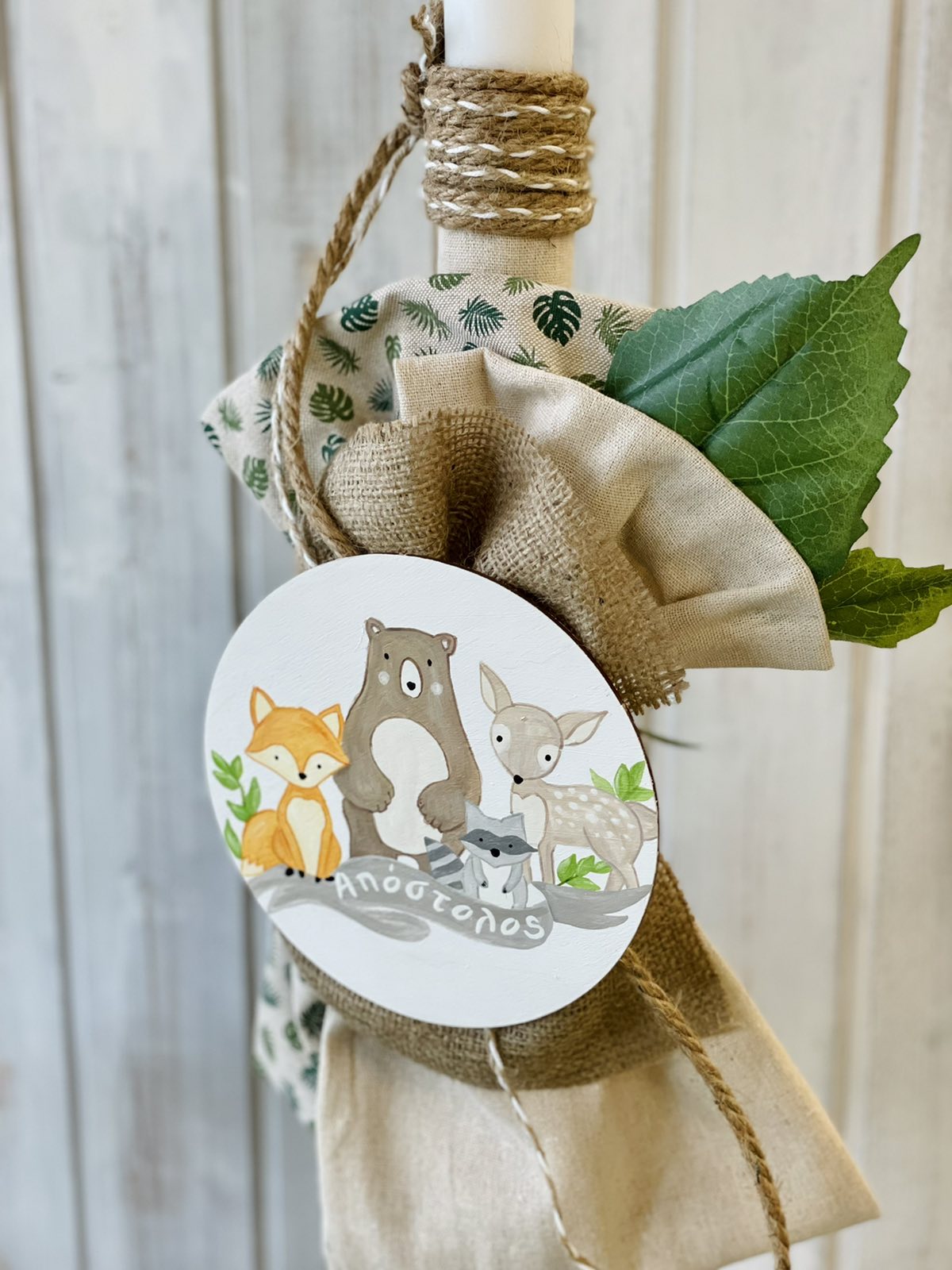 Αξιαγάπητο σετ βάπτισης με θέμα ζωάκια του δάσους με ζωγραφιά στο χέρι