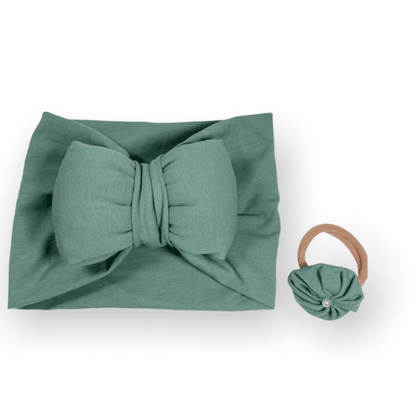 Τουρμπάνι ανοιχτό σε χρώμα φυστικί με ασορτί λαστιχάκι για τα μαλλιά.